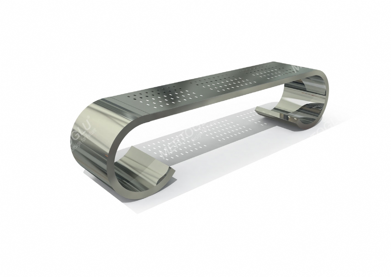 Parkbänk Arola i rostfri plåt för offentlig miljö.