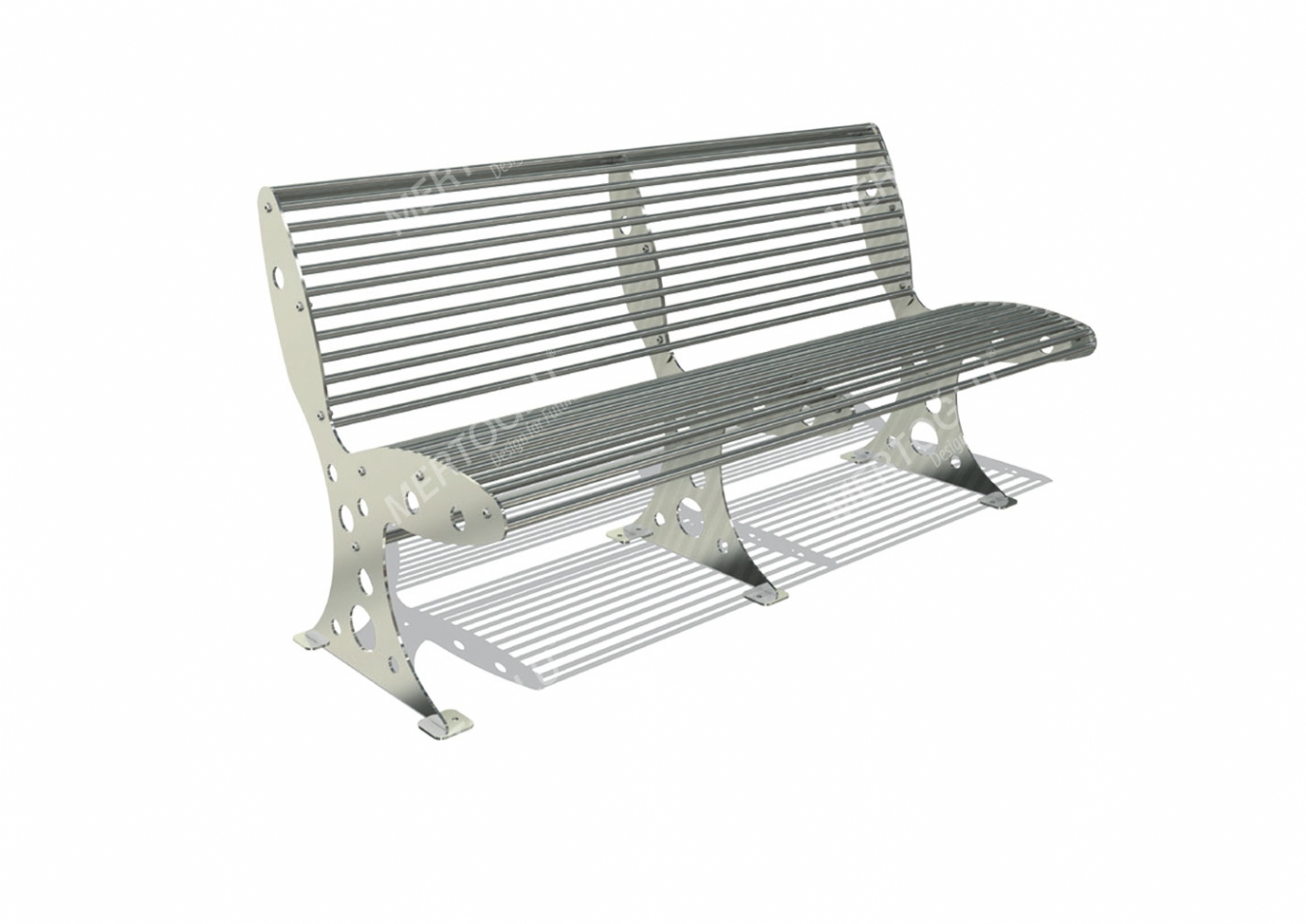 Parkbänk Arula i rostfritt stål metall för offentlig miljö.