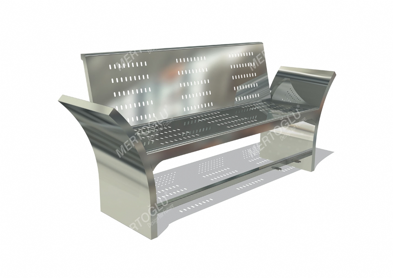 Parkbänk Bele i rostfri plåt för offentlig miljö.