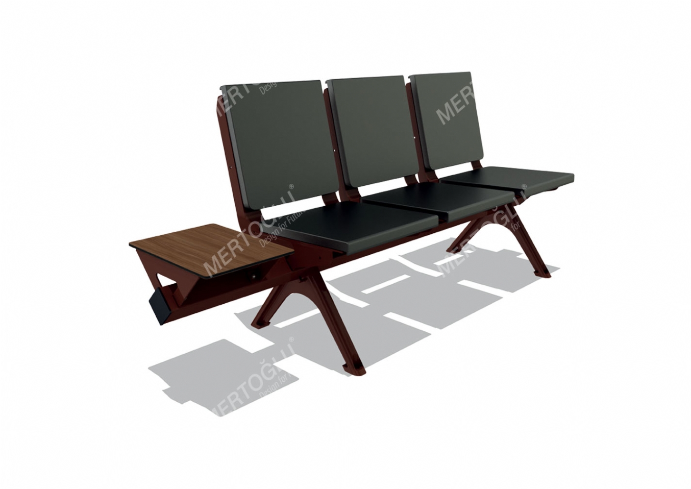 Parkbänk Belel i plåt, polyurethane covering och mdf laminated för offentlig miljö.