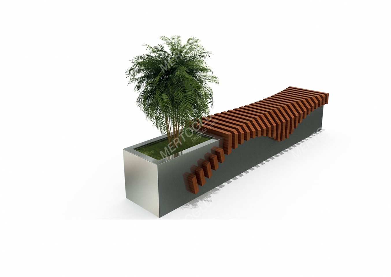 Parkbänk Beleno är utvecklad för parker, torg, gårdar och andra offentliga miljöer där man vill skapa hållbara sittplatser. Produkten har bredd 245 cm, djup 50 cm och höjd 45 cm. Utförandet i stainles steel metall och painted pine ger en tålig konstruktion som lämpar sig för återkommande användning i krävande miljöer. Den har ett uppgivet volymmått på 0,55 m³.