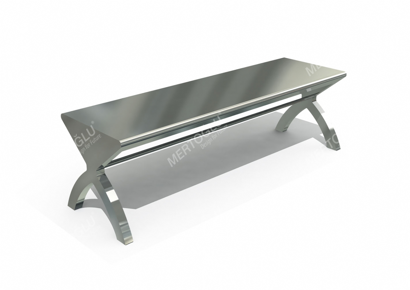 Parkbänk Belia i rostfri plåt för offentlig miljö.