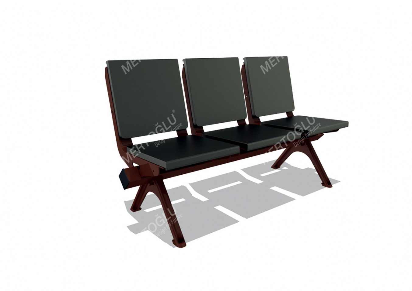 Parkbänk Belun i plåt, polyurethane covering och HPL för offentlig miljö.