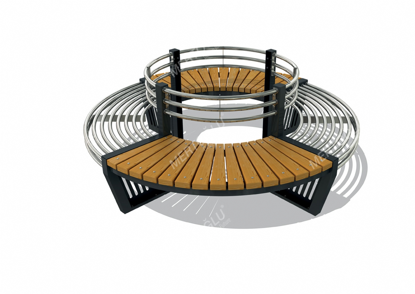 Parkbänk Beluno i metallprofil och impregnerad furu för offentlig miljö.