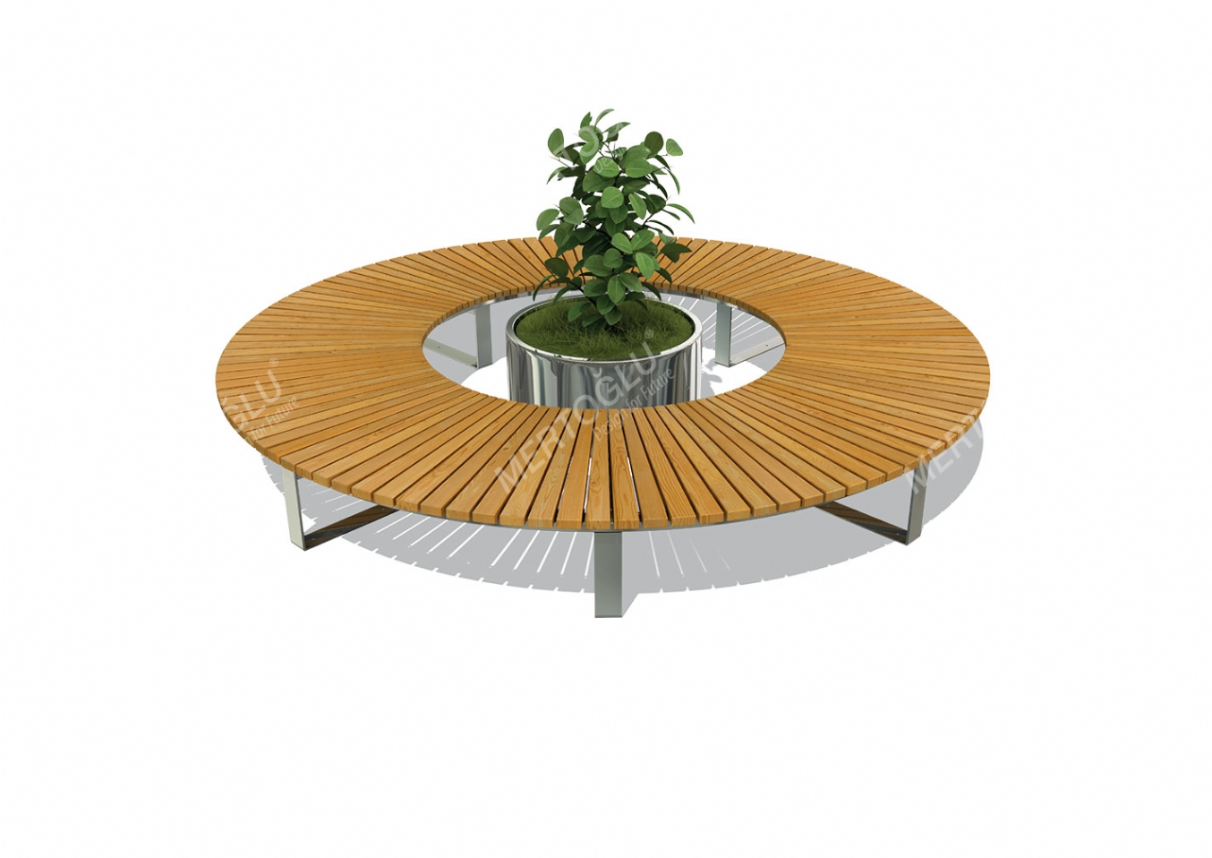 Parkbänk Biran i rostfri plåt och impregnerad furu för offentlig miljö.