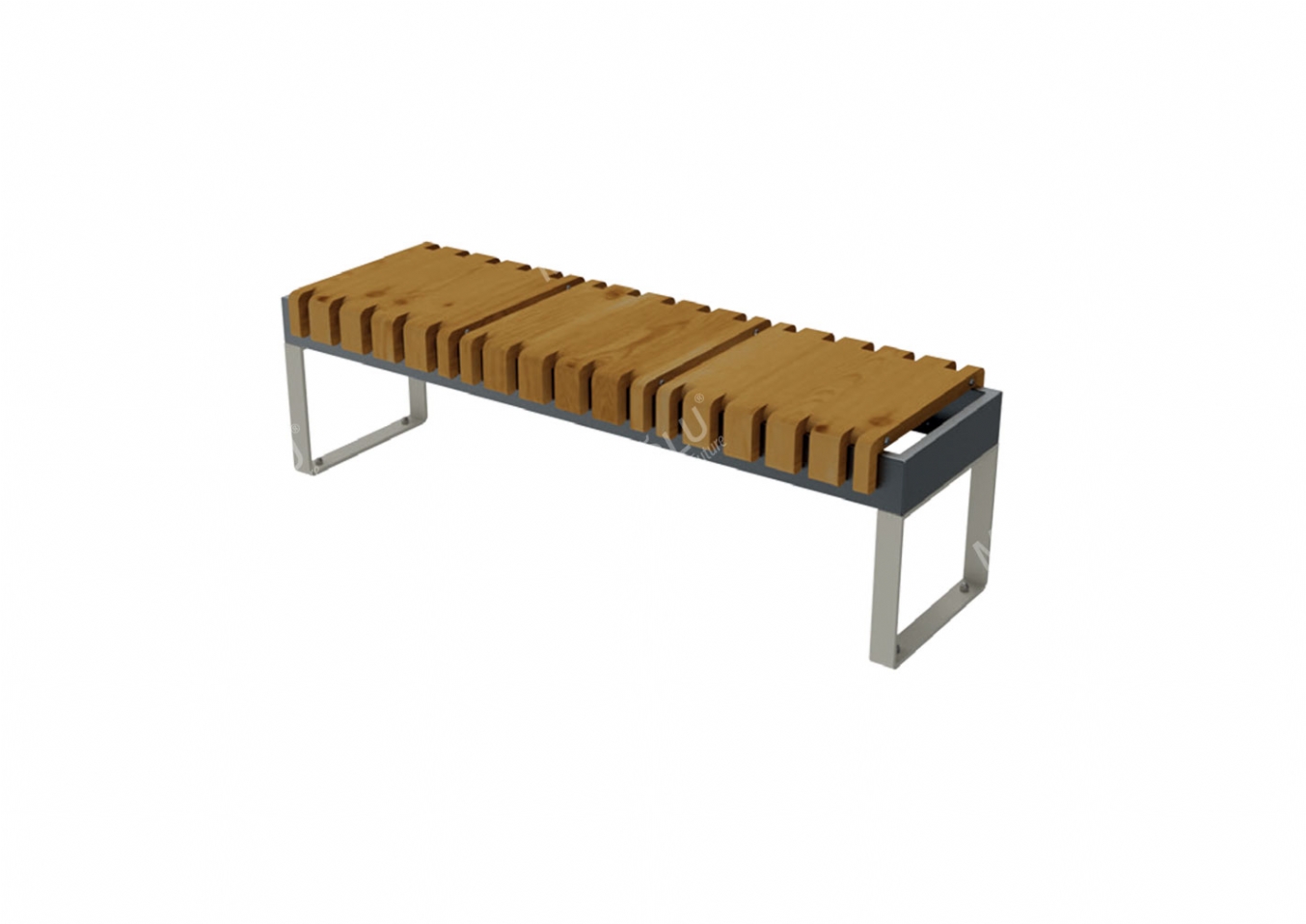 Parkbänk Birena i marine laminated panel för offentlig miljö.