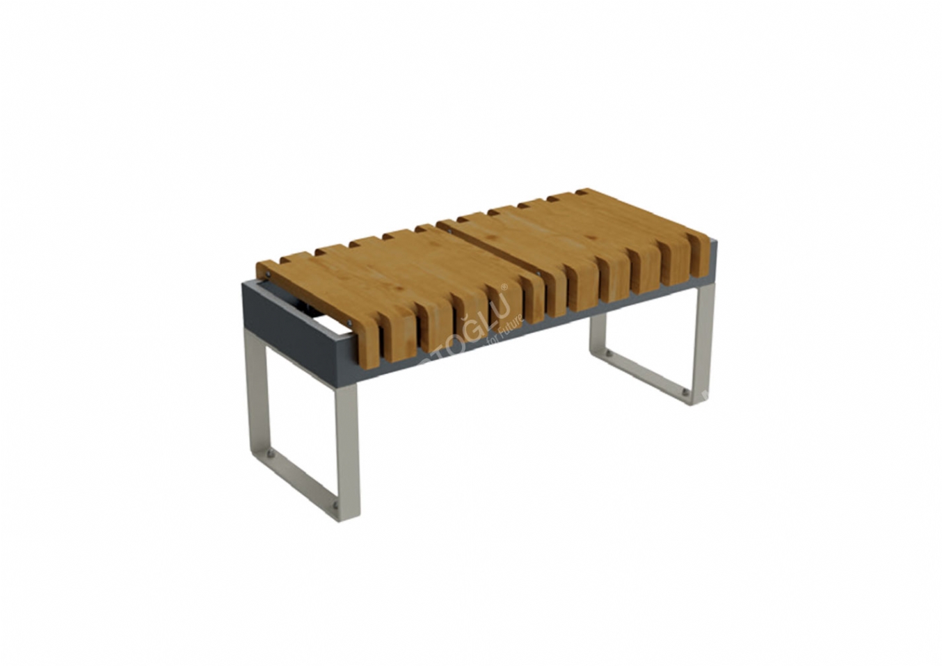 Parkbänk Birera i marine laminated panel för offentlig miljö.