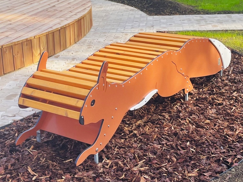 Parkbänk Ekorre är en del av serien Tribute to Wildlife och är framtagen för lekplatser, förskolegårdar och andra offentliga utemiljöer. Produkten fungerar som sittplats och lekfullt inslag samtidigt, med fokus på offentlig användning över tid. Konstruktionen är anpassad för regelbunden användning i offentlig drift och för att behålla funktion över lång tid. Mått enligt specifikation: cirka 2,38 x 0,53 x 0,57 m. Rekommenderad ålder: 1+. En hållbar lösning för trygg och inspirerande lek i naturinspirerad miljö.