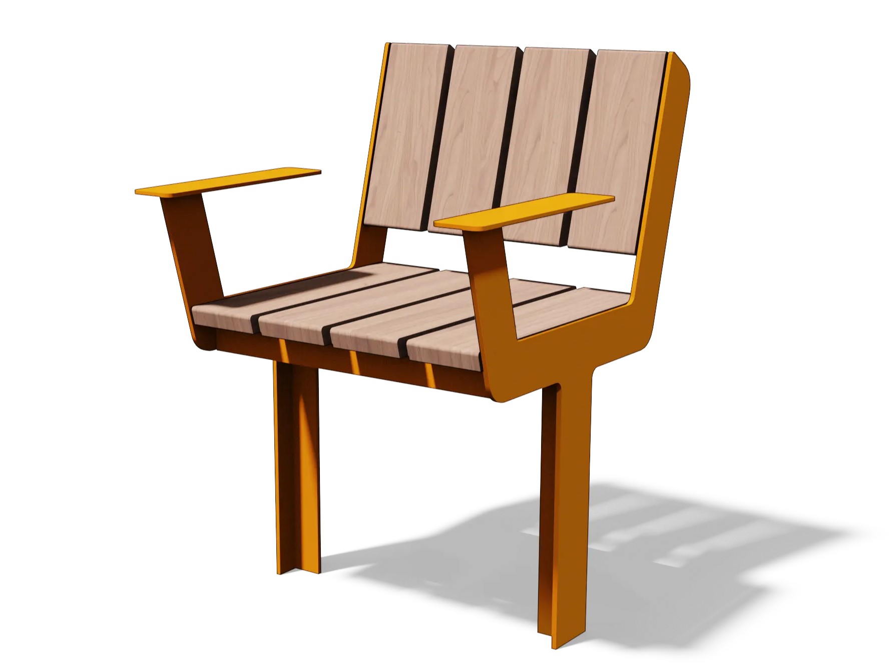 Parkbänk i stål och trä.