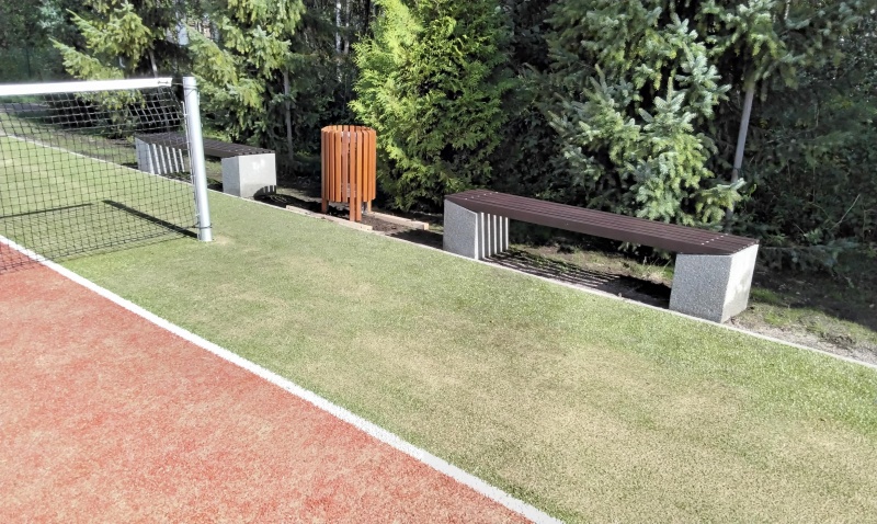 Parkbänk i betong och lärk.