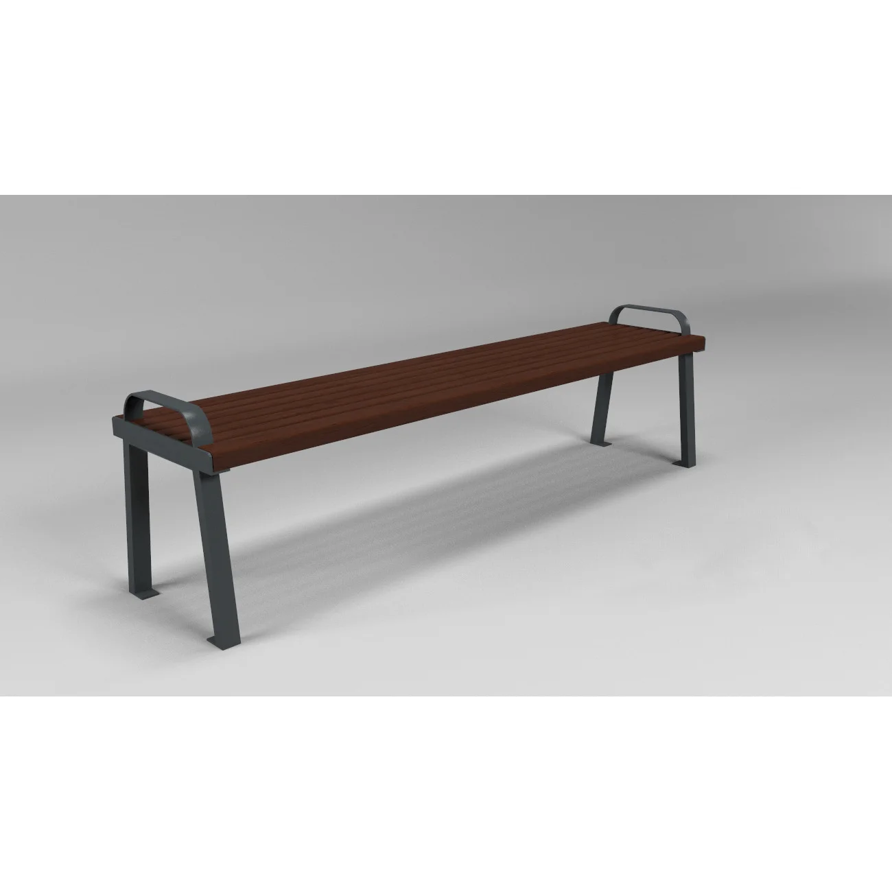 Parkbänk i stål, betong och lärk.
