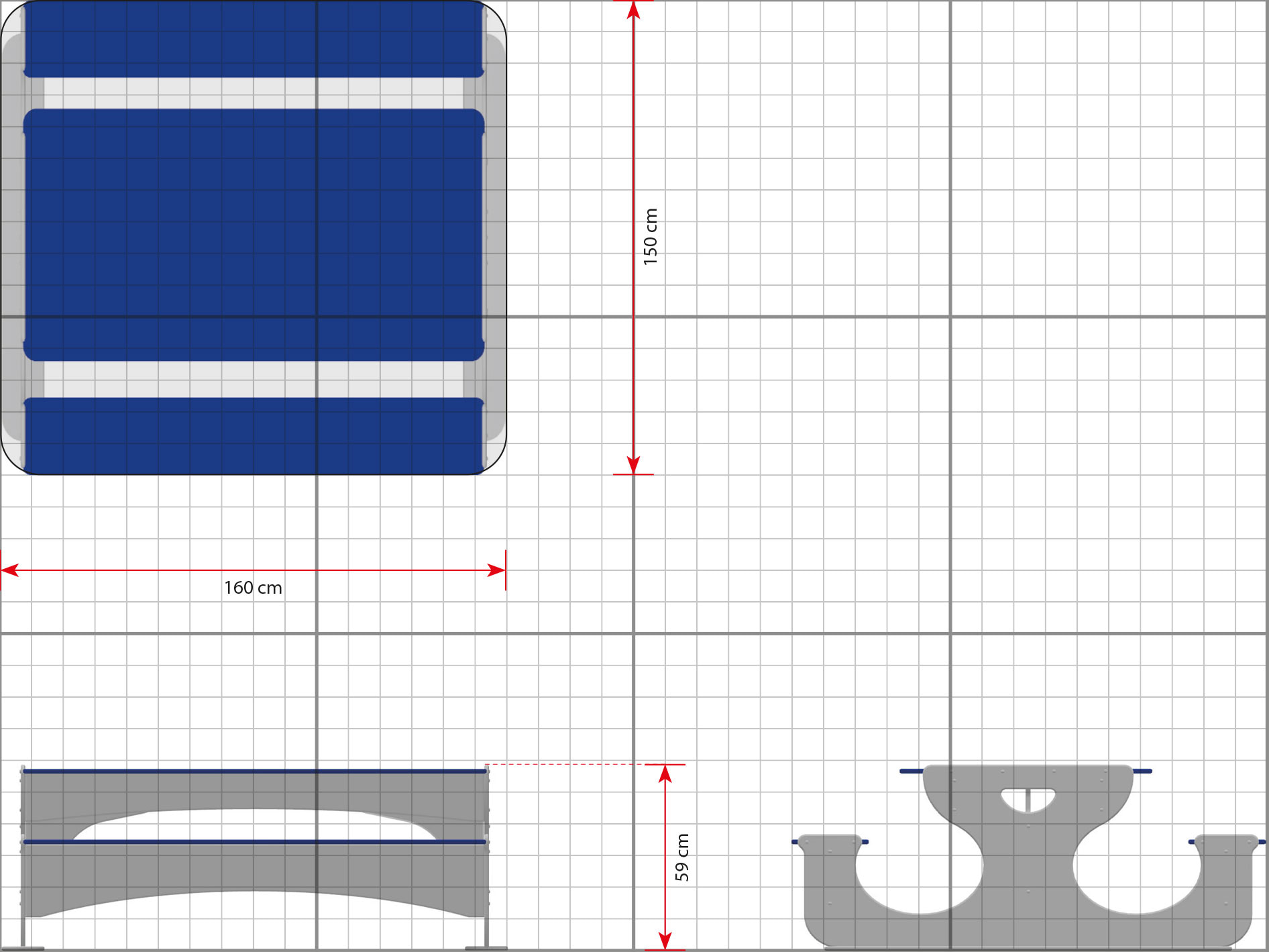 Parkbänk Rala är utformad för rast- och vistelseytor där slitstyrka och låg underhållsnivå är viktigt. Produkten fungerar i park, skolgård och andra offentliga utemiljöer. Den ger en stabil och långsiktig lösning för daglig användning. Mått (L x B x H): 160 cm x 150 cm x 59 cm. Max fallhöjd: 59 cm. Rekommenderad ålder: Från 2 år.