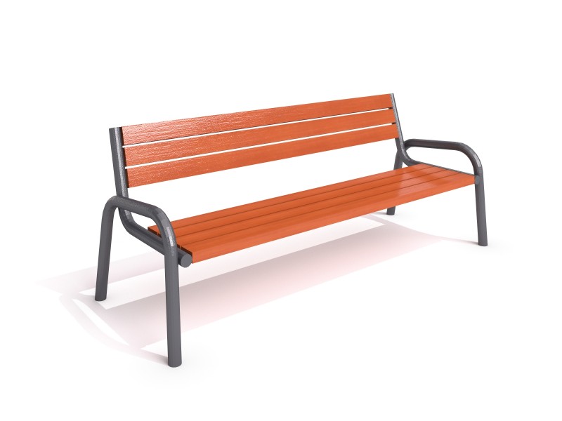 Parkbänk stål 25 för park- och stadsmiljö med hållbar konstruktion, funktionell design och låg skötselnivå i daglig drift. Material: trä.