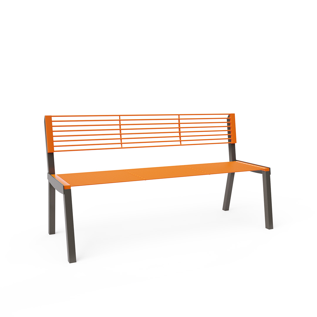 Parkbänk Novald 1,5 m för offentlig utomhusmiljö.