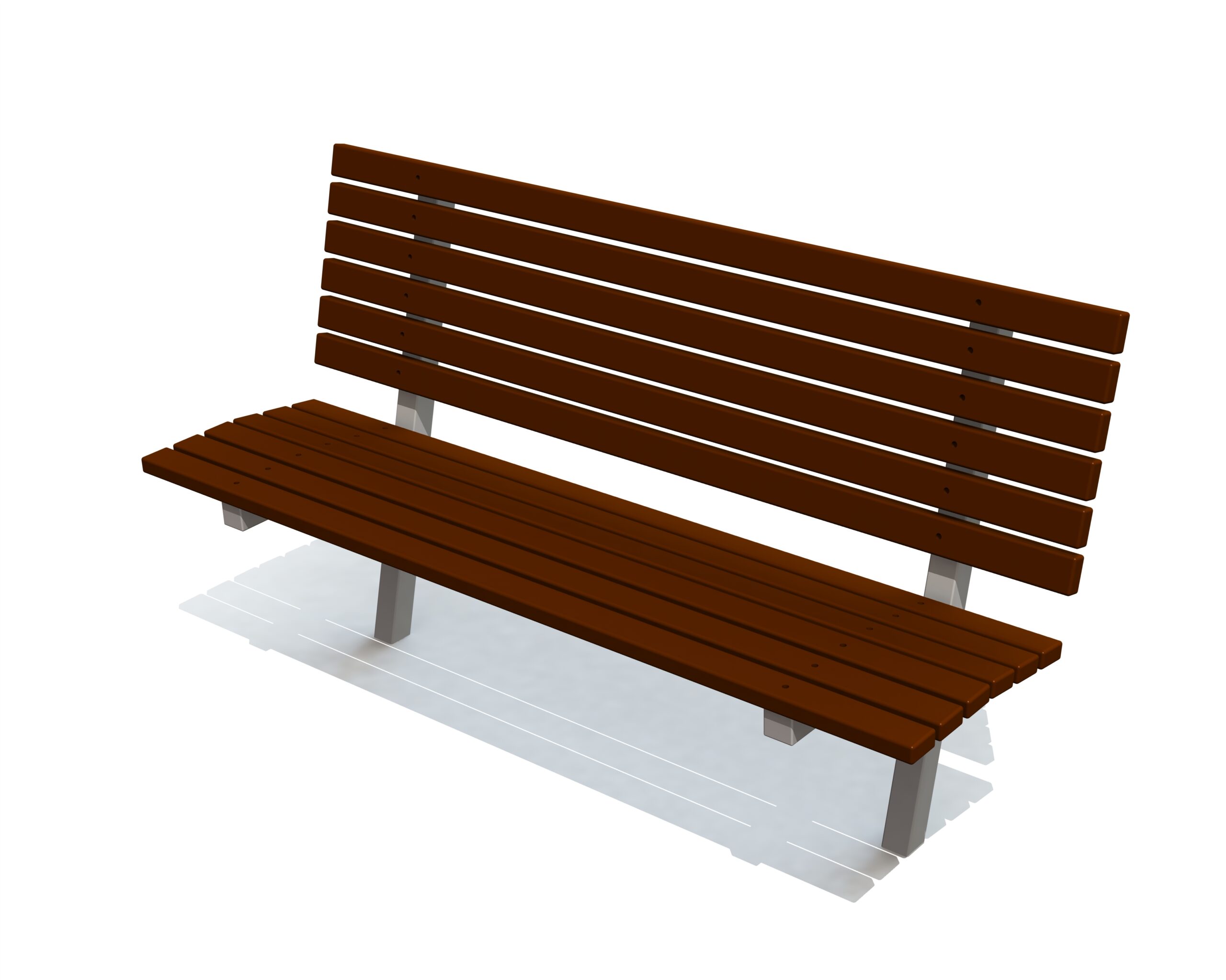 Parkbänk med ryggstöd i varmförzinkat stål och trä.