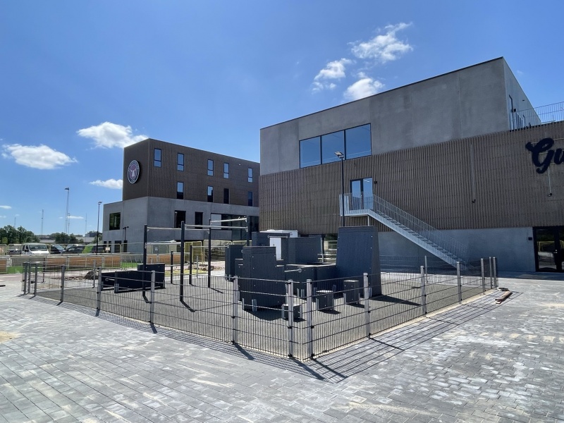 Parkourstruktur med väggelement i hållbart korslaminerat trä (CLT) som säkerställer stabilitet och hållbarhet vid skiftande luftfuktighet. Träet är väderbehandlat i fyra steg. Övre kanter är täckta med gummibelagd halkskyddsplast i grått eller rött. Horisontella rör i rostfritt stål och vertikala stolpar i varmförzinkat och pulverlackerat stål. Avsedd för ytmontering på exempelvis armerad betongplatta. Markfästen i varmförzinkad metall.