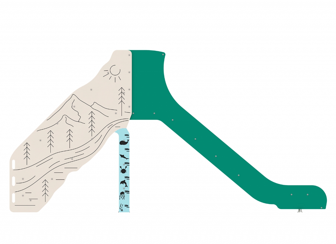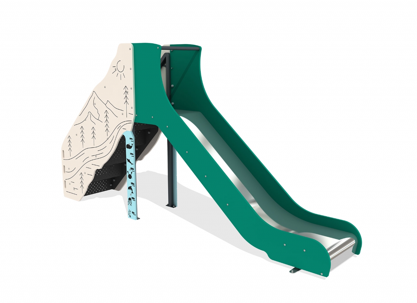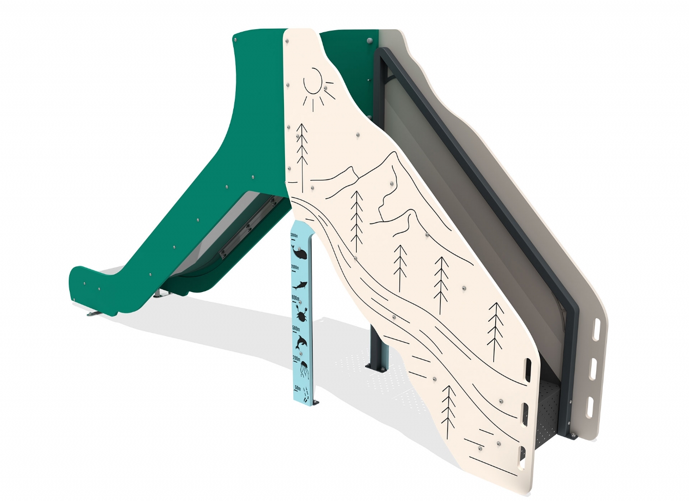 Rutschkana Kelis är utvecklad för lekplatser där man vill erbjuda tydlig rörelselek och en direkt lekfunktion. Produkten har bredd 331 cm, djup 64 cm och höjd 170 cm. Specifikationen omfattar säkerhetszon L 629 x W 358 samt rutschhöjd 100 cm. Utförandet i rostfri plåt ger en tålig konstruktion som lämpar sig för återkommande användning i krävande miljöer. Den är anpassad för upp till 4 barn och rekommenderad ålder 1-6.
