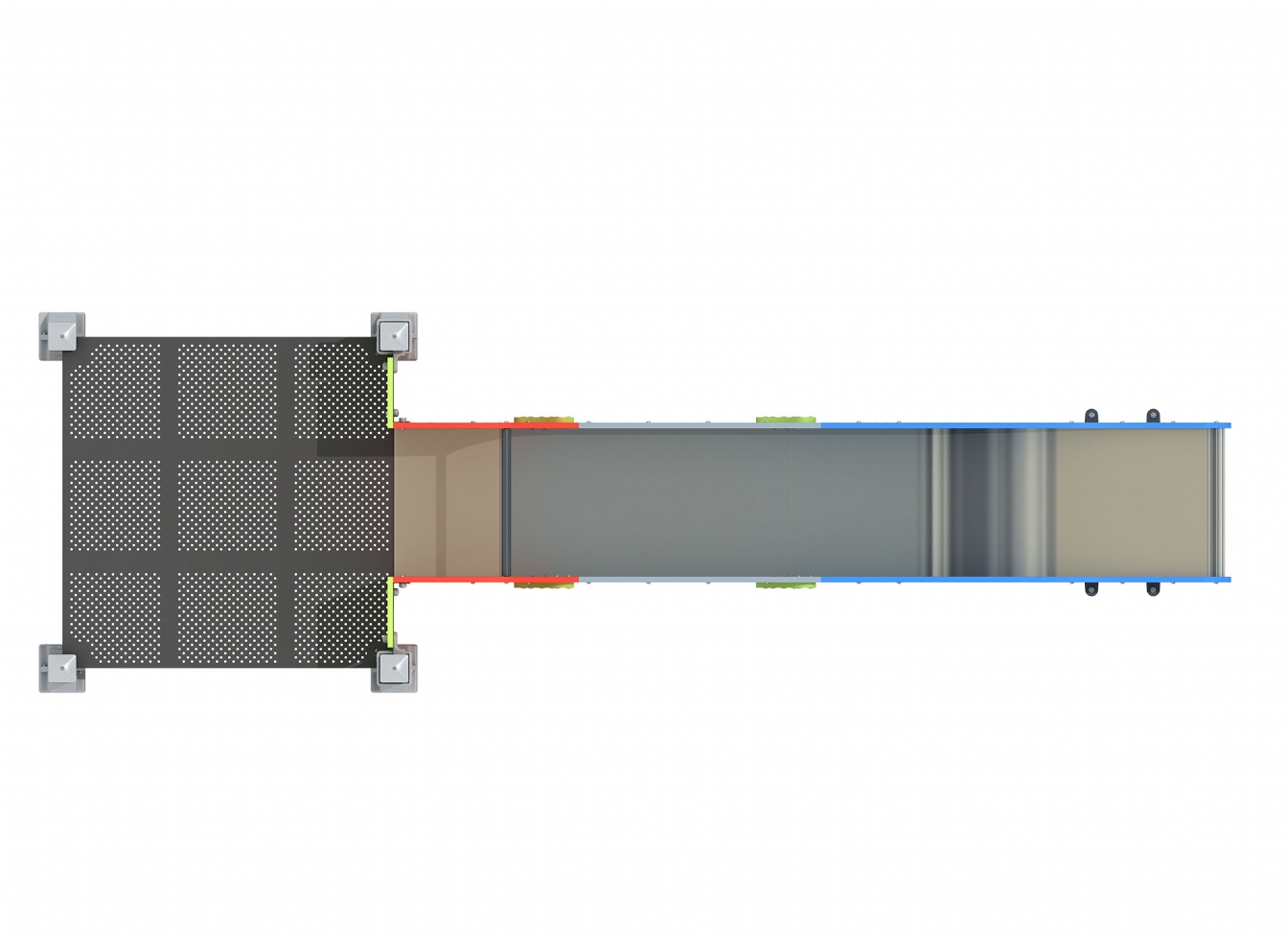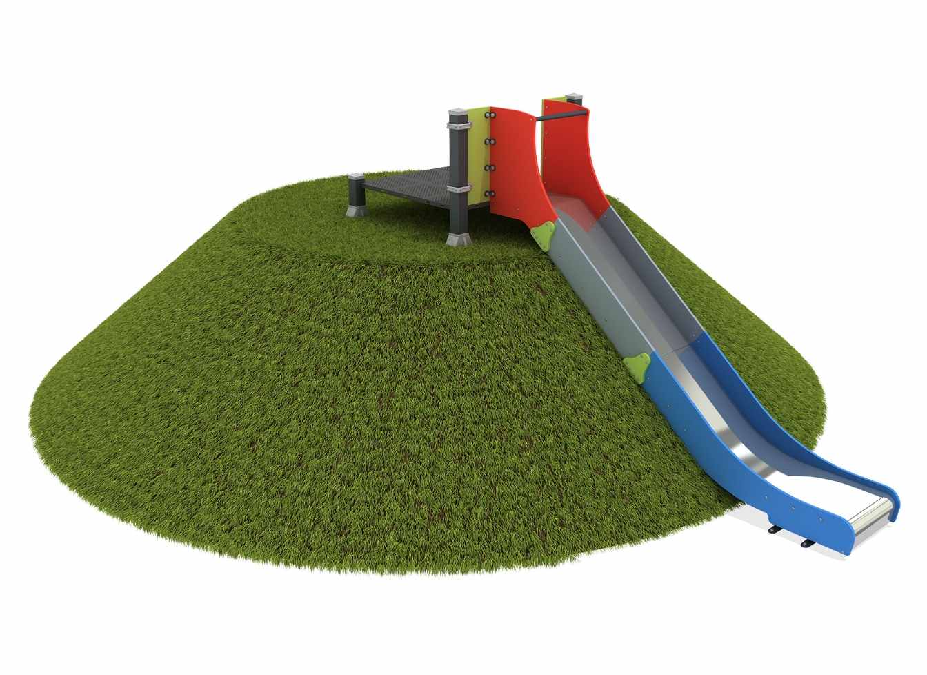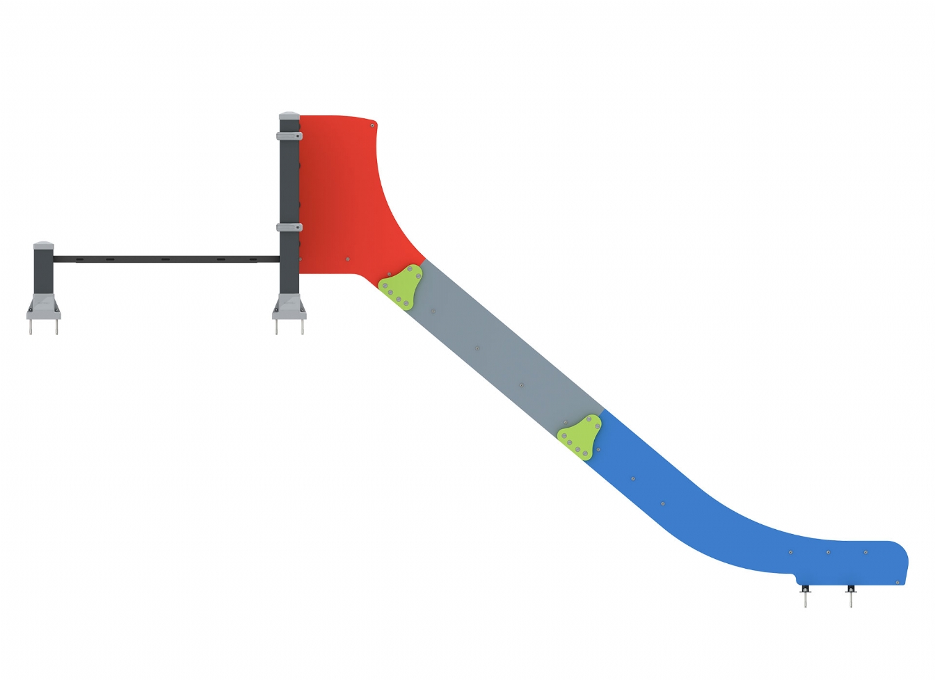 Rutschkana Kelos är utvecklad för lekplatser där man vill erbjuda tydlig rörelselek och en direkt lekfunktion. Produkten har bredd 406 cm, djup 130 cm och höjd 221 cm. Specifikationen omfattar säkerhetszon L 754 x W 430 samt rutschhöjd 150 cm. Utförandet i rostfri plåt ger en tålig konstruktion som lämpar sig för återkommande användning i krävande miljöer. Den är anpassad för upp till 3 barn och rekommenderad ålder 3-12.