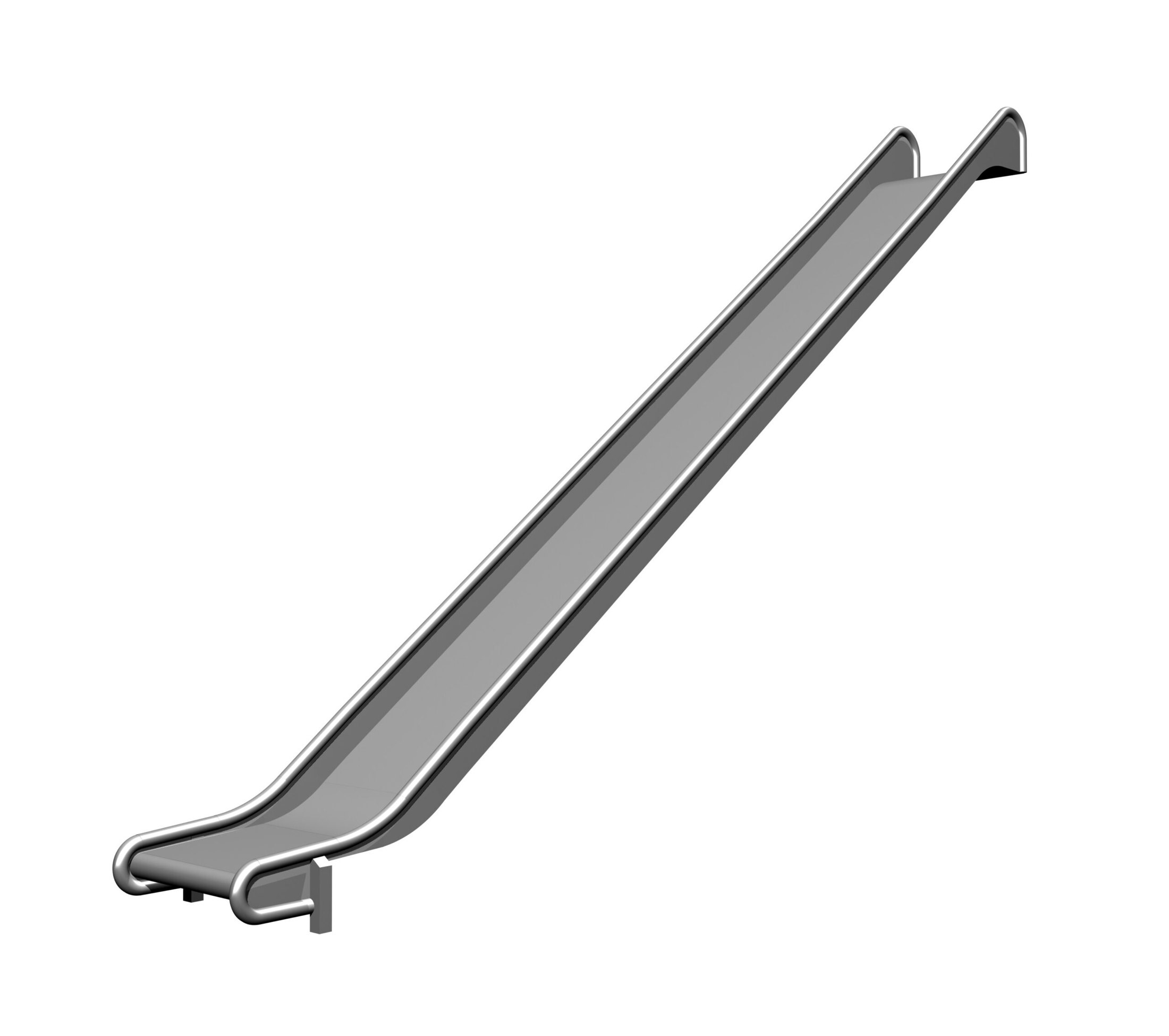 Denna produkt är utvecklad för offentlig lekplatsmiljö med fokus på säker användning och hög slitstyrka. Slide for tower/embankment. Stainless stål, AISI 304. Thickness of plate 2 mm. Hand rail 38×2 mm. Safety not included.