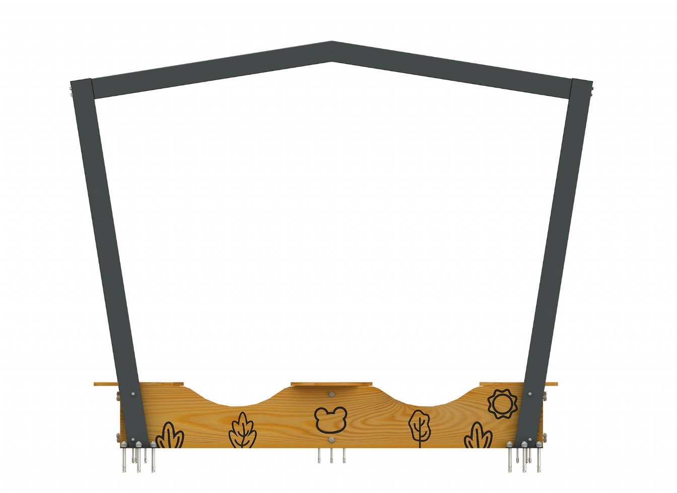 Sand- och vattenlek Orera i metallprofil och marinplywood för offentlig miljö.