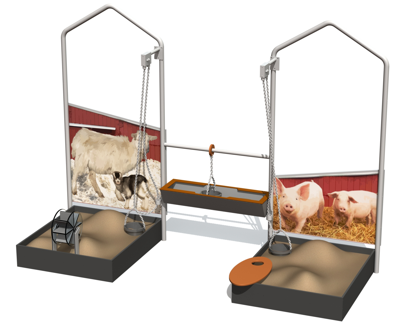 Sand & vattenlek Bodrik är en gårdsinspirerad sandlekenhet i FARMLIFE-serien där barn kan utforska material, former och rörelser i egen takt. Produkten är utformad med flera sandlekmoment som stödjer kreativitet, samarbete och finmotorik. Temat med lantgårdsmotiv gör det lätt för barn att skapa berättelser och rollekar i grupp. Bodrik passar lekplatser och förskolemiljöer som vill kombinera pedagogisk temalek med praktisk aktivitet i sand. Konstruktionen är anpassad för offentlig utemiljö och regelbunden användning. Mått enligt specifikation: cirka 2,98 x 1,24 x 2,15 m. Rekommenderad ålder: 1+. En tydlig och hållbar samlingspunkt för temalek.