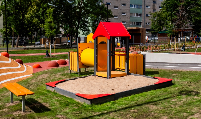 Lekcenter för yngre barn som kombinerar sandlek, rollspel och skyddad lek. Skapar en trygg och kreativ lekmiljö.