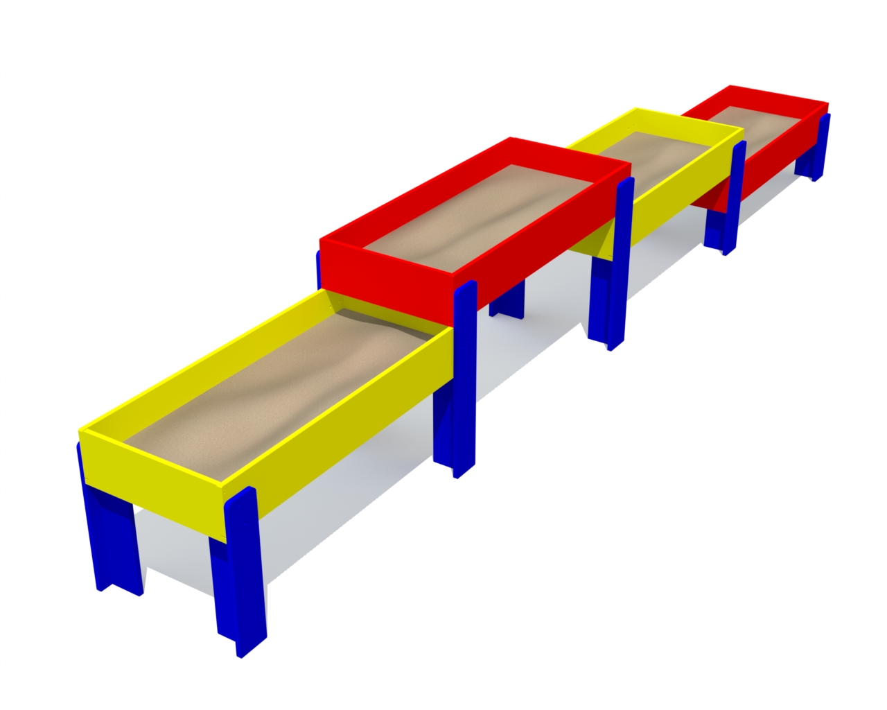 Sandlåda i flera nivåer på ben, anpassad för barn med särskilda behov. Ger god tillgänglighet och trygg lek. Levereras utan sand.
