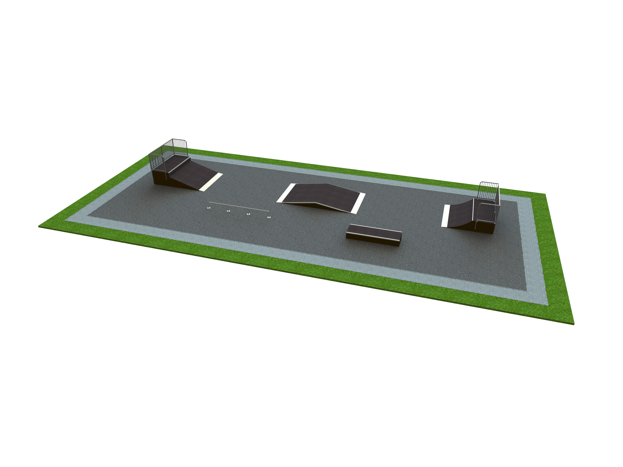 Skateboard Alva är utformad som skateparklösning för skateparker och offentliga aktivitetsytor. Mått: L 7,5 m, B 22 m, H 1 m.