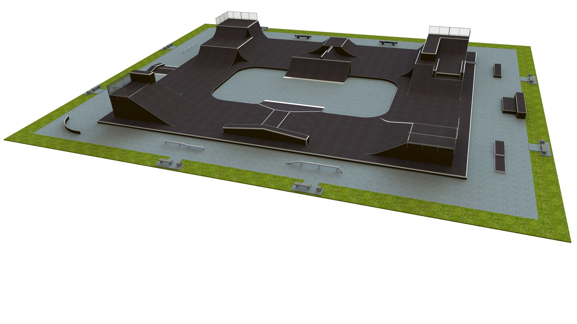 Skateboard Johanna är utformad som skateparklösning för skateparker och offentliga aktivitetsytor. Mått: L 45 m, B 55 m, H 4 m.