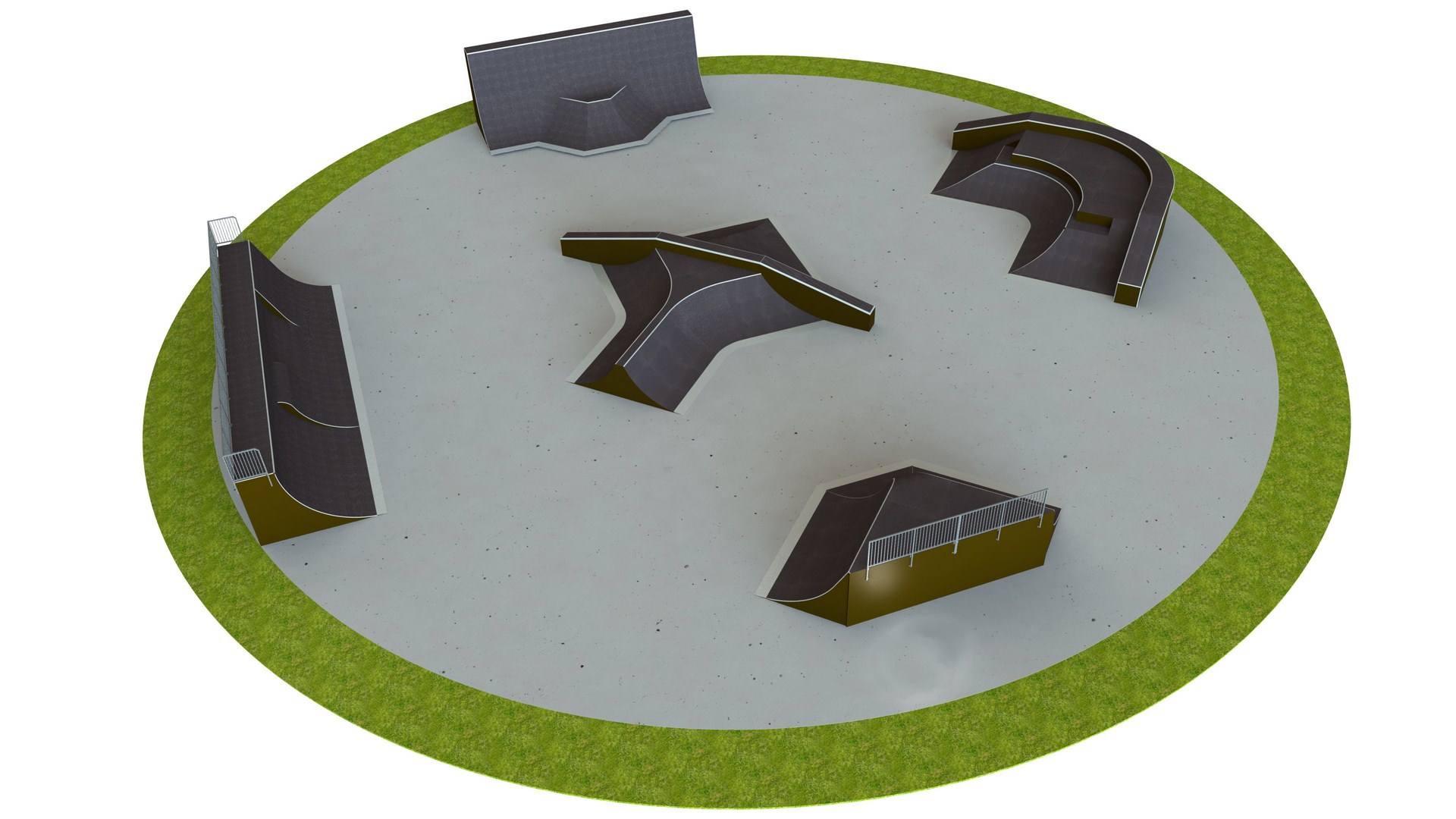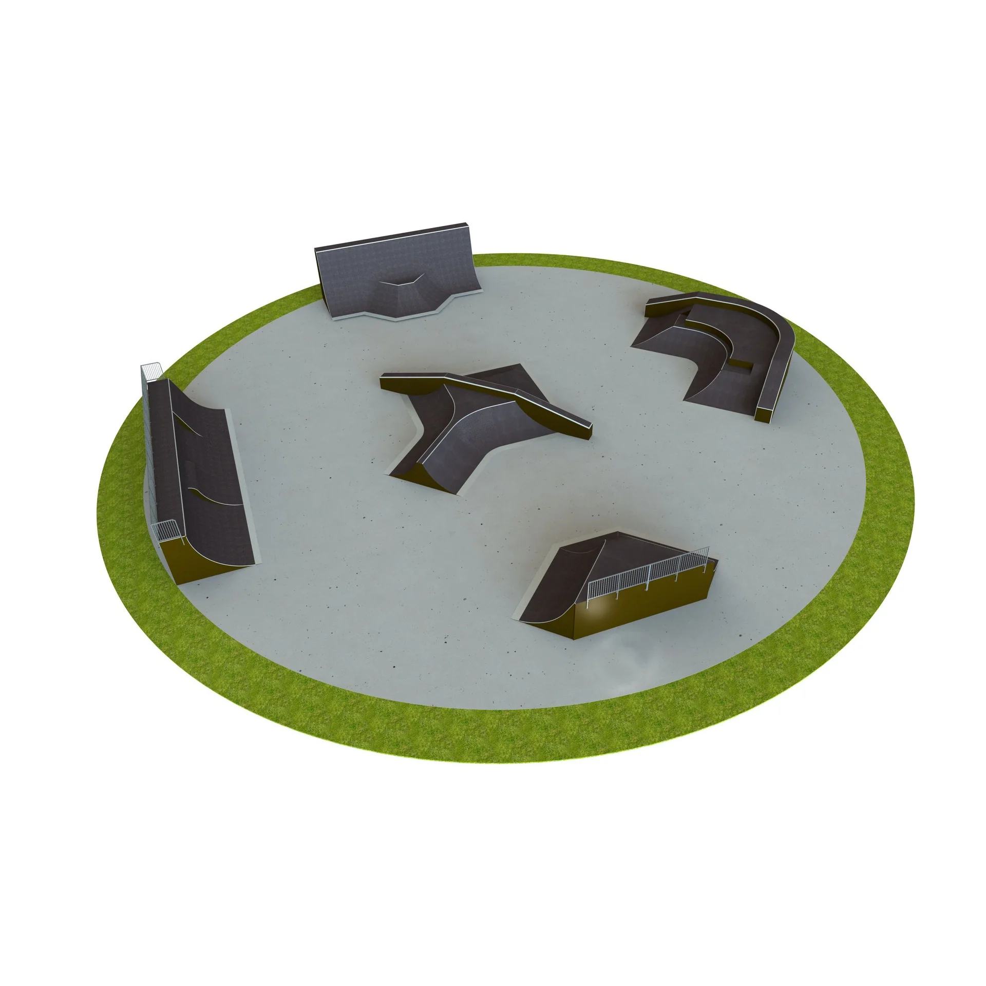 Skateboard Matilda är utformad som skateparklösning för skateparker och offentliga aktivitetsytor. Mått: L 43 m, B 43 m, H 4 m.