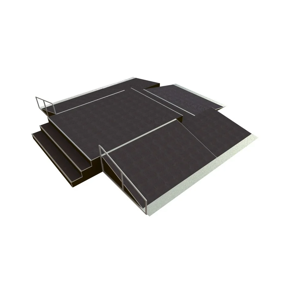 Skateboard Vera är utformad som trappelement för skateparker och offentliga aktivitetsytor. Mått: L 9,4 m, B 10,7 m, H 0,9 m.