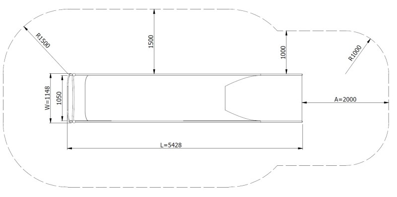Släntrutschkana Eliri 2.8 m för offentlig utemiljö med fokus på säker användning, robust konstruktion och lång livslängd vid daglig drift. Höjd 2,8 m.
