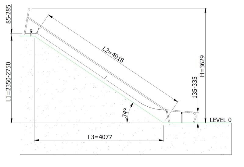 Släntrutschkana Gliti 2.8 m för offentlig utemiljö med fokus på säker användning, robust konstruktion och lång livslängd vid daglig drift. Höjd 2,8 m.
