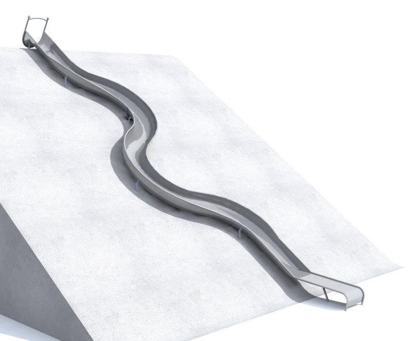 Släntrutschkana GLITI-S 8,94 m för offentlig utemiljö med fokus på säker användning, robust konstruktion och lång livslängd vid daglig drift. Höjd 94 m. Material: rostfritt stål.