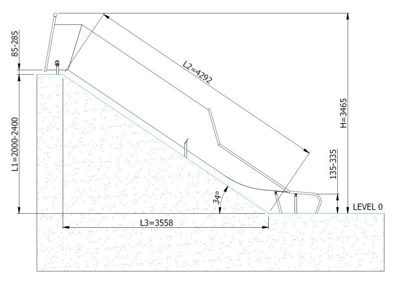Släntrutschkana Tubo 2.4 m för offentlig utemiljö med fokus på säker användning, robust konstruktion och lång livslängd vid daglig drift. Höjd 2,4 m.