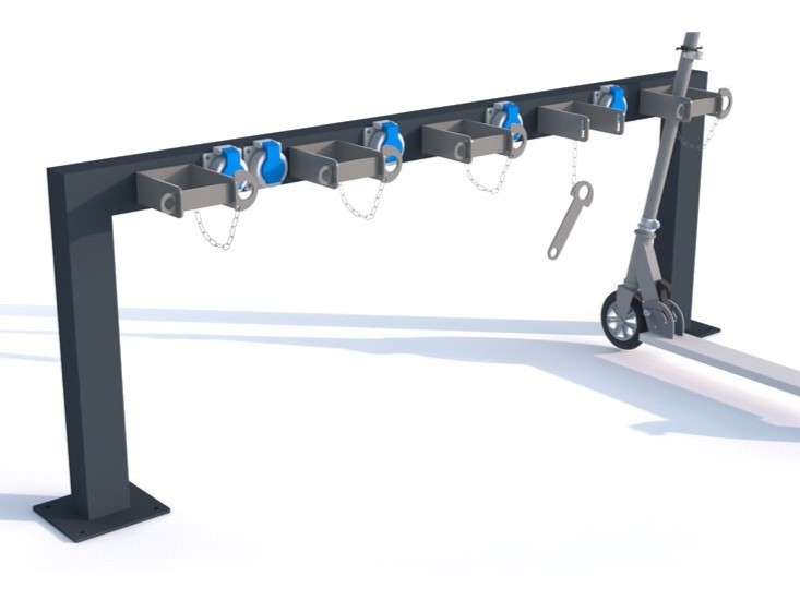 Sparkcykelställ Ivalo 5 är ett ställ för elsparkcyklar med 5 parkeringsplatser. Det levereras med 5 ladduttag och har även låsalternativ enligt produktinformationen. Konstruktionen är galvaniserad och pulverlackerad. Ivalo 5 kan också beställas i rostfritt stål. Färg kan väljas enligt RAL-kod för att anpassa stället till platsens färgsättning. Stället är framtaget för att samla parkering och laddning i en enhet och skapa en tydlig plats för elsparkcyklar. Den tydliga konstruktionen gör produkten enkel att använda i vardagen och ger en lösning som fungerar i både mindre och större projekt. Sammantaget är det ett hållbart val för långsiktig användning i offentlig utemiljö.