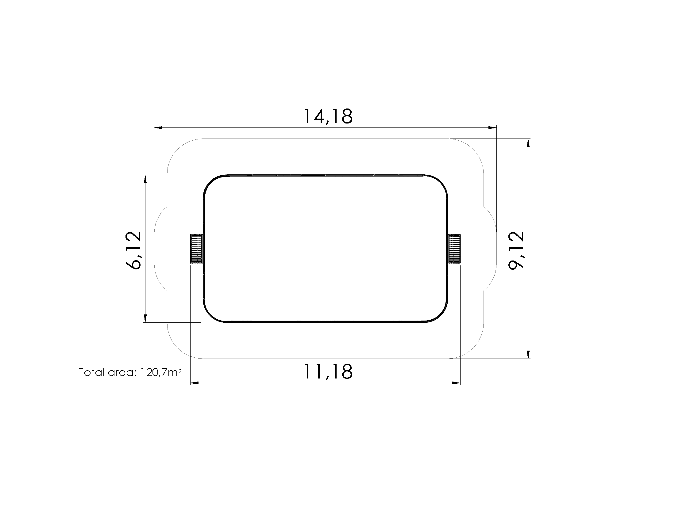 The internal dimensions of the multifunctional arena are: 6 x 10 m and the external dimensions are 6,12 x 11,18 m.