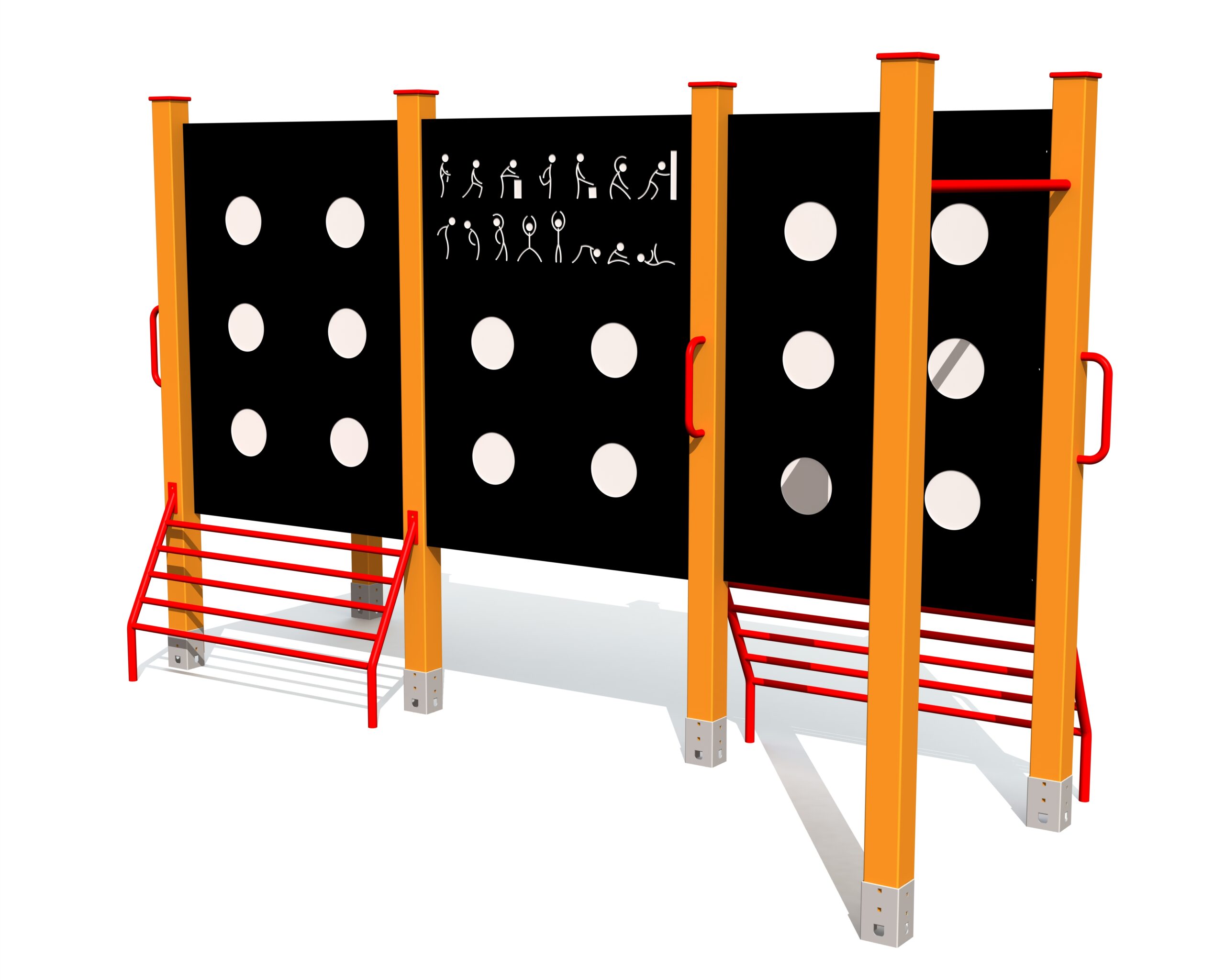 Sträckande och hängande vägg bestående av flera olika tränings- och stretchelement. Levereras med bruksanvisning och är avsedd för rörlighets- och kroppsviktsträning.