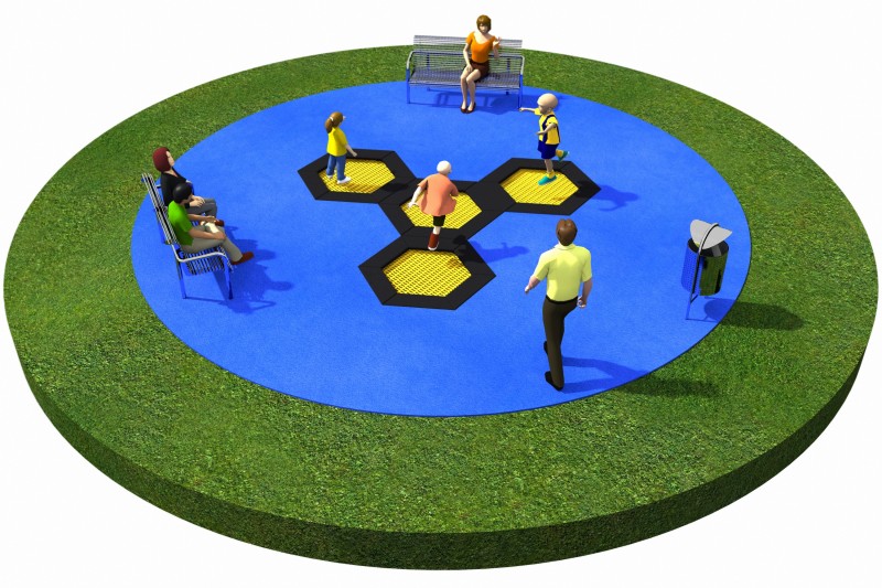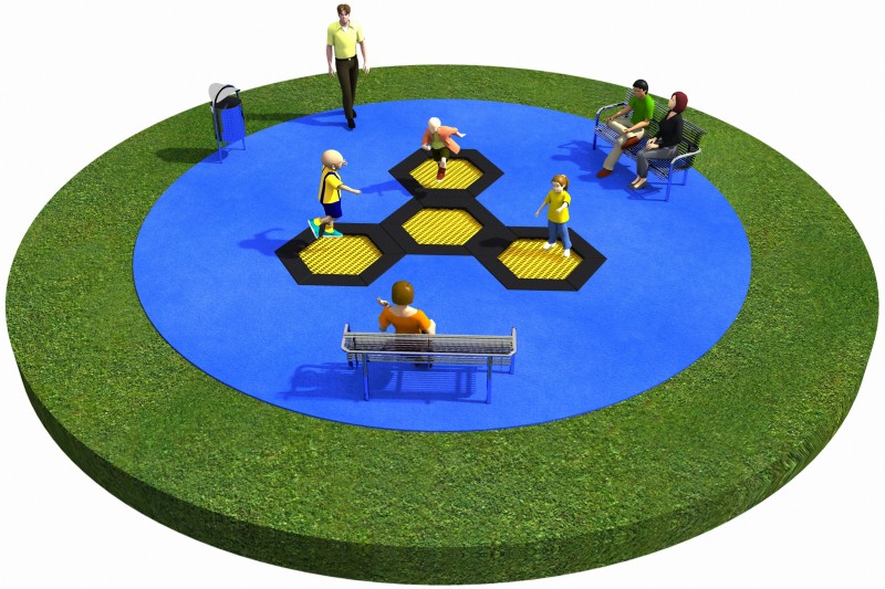 Studsmatta 1 för intensiv offentlig lek med säker studs, hållbar konstruktion och hög användarkomfort över tid.
