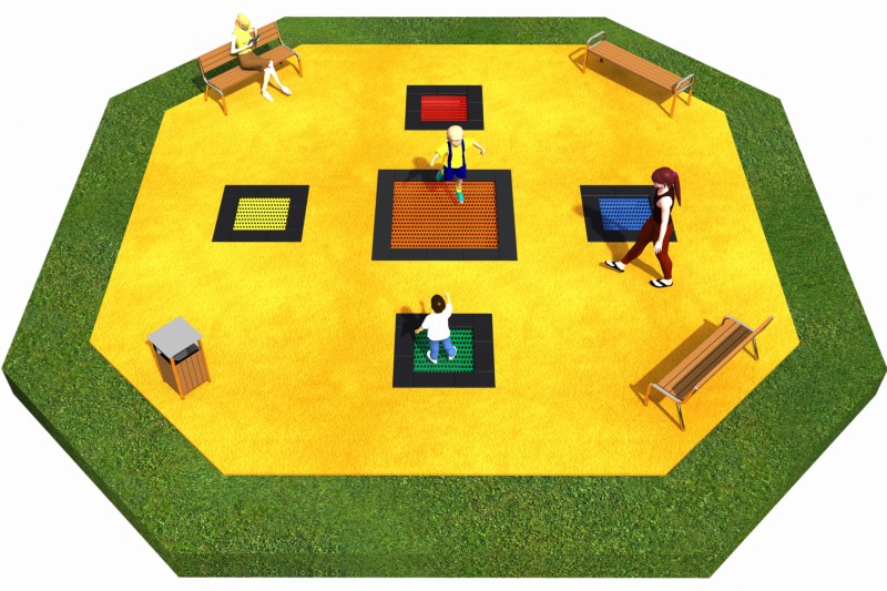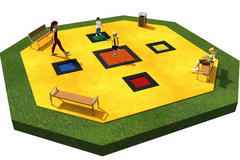 Studsmatta 11 för intensiv offentlig lek med säker studs, hållbar konstruktion och hög användarkomfort över tid.