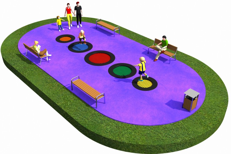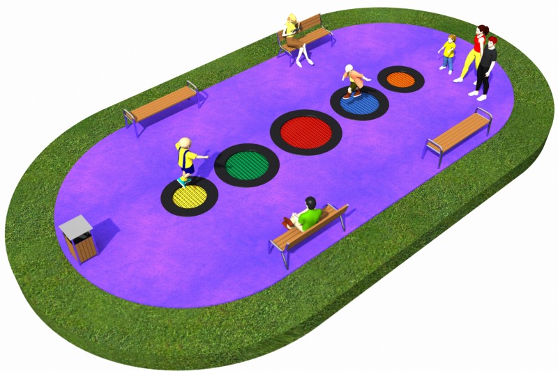 Studsmatta 20 för intensiv offentlig lek med säker studs, hållbar konstruktion och hög användarkomfort över tid.