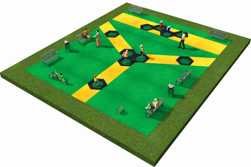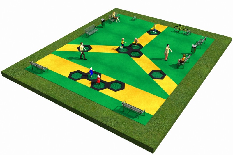 Studsmatta 4 för intensiv offentlig lek med säker studs, hållbar konstruktion och hög användarkomfort över tid.