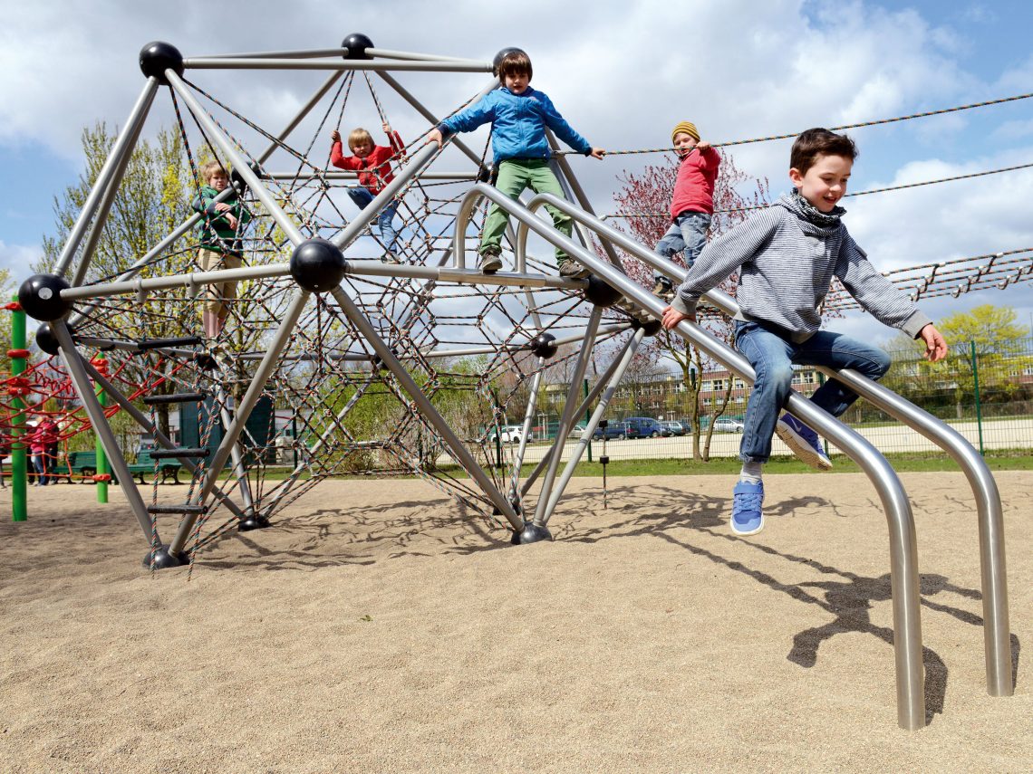 Produkten är utvecklad för lekplatser, förskolegårdar och andra offentliga utemiljöer där utrustningen behöver tåla regelbunden användning över tid. Modellen skapar en tydlig aktivitetsyta där barn kan utveckla rytm, balans och koordination i kontrollerad form. Mått enligt specifikation: cirka 5,3 x 10 x 3,6 m. Rekommenderad ålder: 5+. En hållbar lösning för långsiktig drift och trygg användning i offentlig utemiljö.