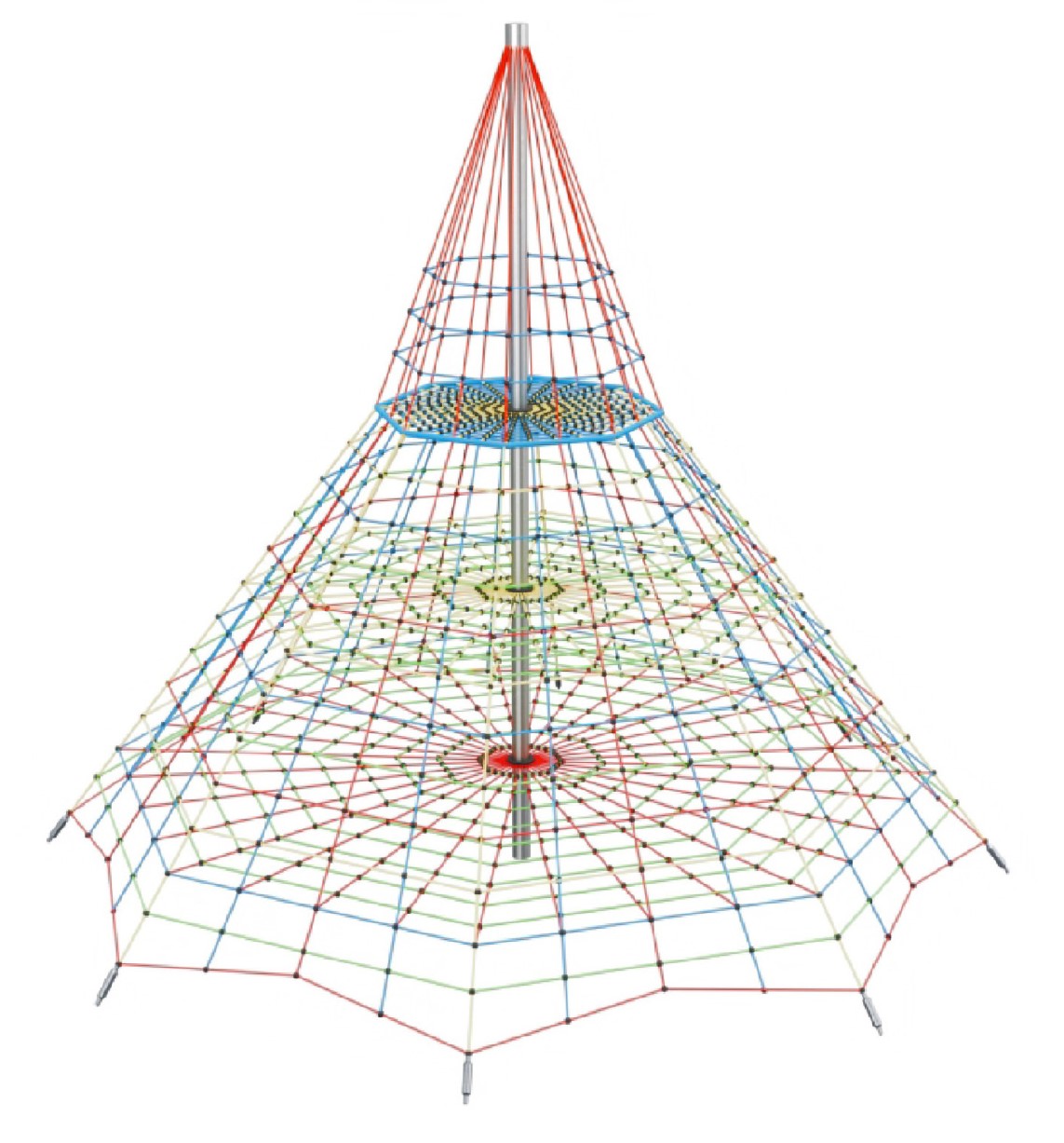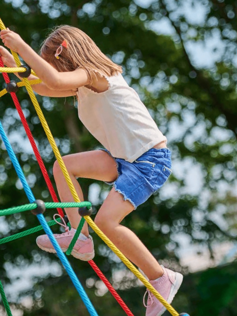 Produkten är utvecklad för lekplatser, förskolegårdar och andra offentliga utemiljöer där utrustningen behöver tåla regelbunden användning över tid. Modellen skapar en tydlig aktivitetsyta där barn kan utveckla rytm, balans och koordination i kontrollerad form. Mått enligt specifikation: cirka 9,7 x 9,7 x 7,5 m. Rekommenderad ålder: 6+. En hållbar lösning för långsiktig drift och trygg användning i offentlig utemiljö.