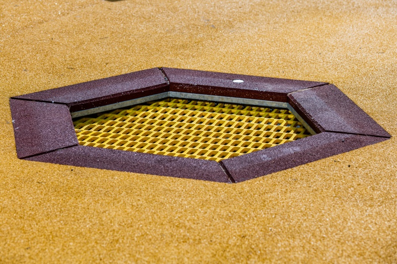 Studsmattan är en av de mest omtyckta lekplatsattraktionerna och uppskattas av barn, tonåringar och vuxna. Den markmonterade konstruktionen ger hög säkerhet, kräver ingen ständig övervakning och är vandalsäker. Kanten är försedd med en stötdämpande säkerhetsmatta av gummi. Hoppytan mäter 97 x 112 cm och är anpassad för intensiv användning i offentliga miljöer.