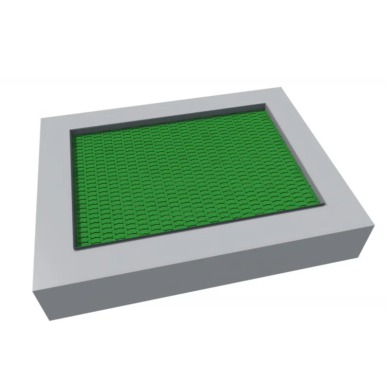 jumping mat is Gjord av very hållbart V-shaped polyamide elements (lamellas), med en non-halk yta in formalternating horizontal och round protrusions,