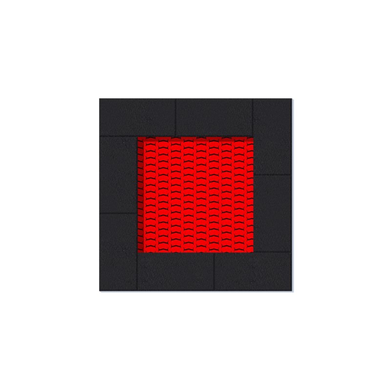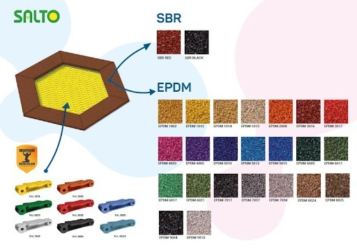 jumping mat is Gjord av very hållbart V-shaped polyamide elements (lamellas), med en non-halk yta in formalternating horizontal och round protrusions,