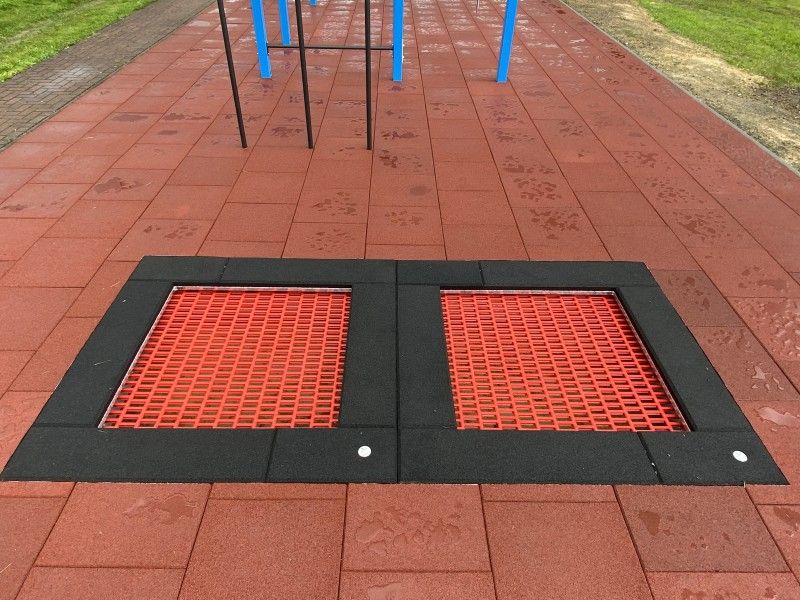 Studsmatta PAKO 125 för intensiv offentlig lek med säker studs, hållbar konstruktion och hög användarkomfort över tid.