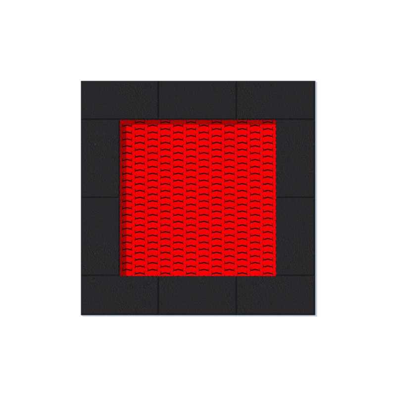jumping mat is Gjord av very hållbart V-shaped polyamide elements (lamellas), med en non-halk yta in formalternating horizontal och round protrusions,