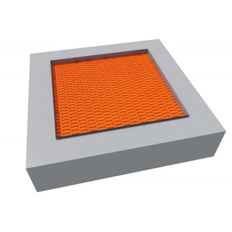 jumping mat is Gjord av very hållbart V-shaped polyamide elements (lamellas), med en non-halk yta in formalternating horizontal och round protrusions,